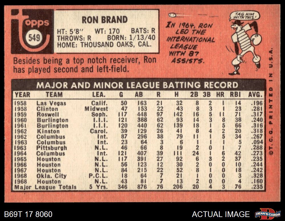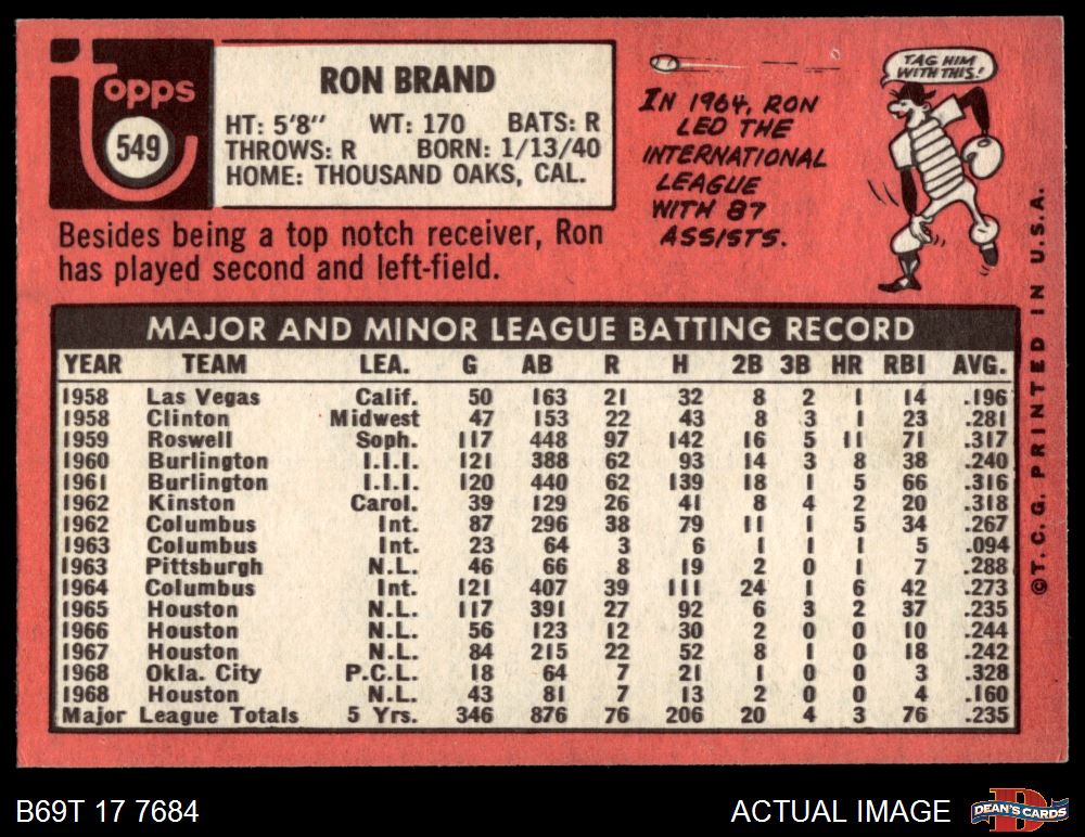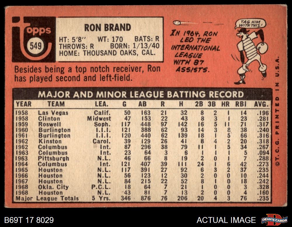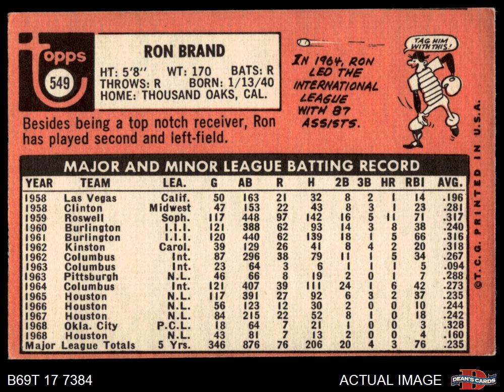 1969 Topps #549 Ron Brand