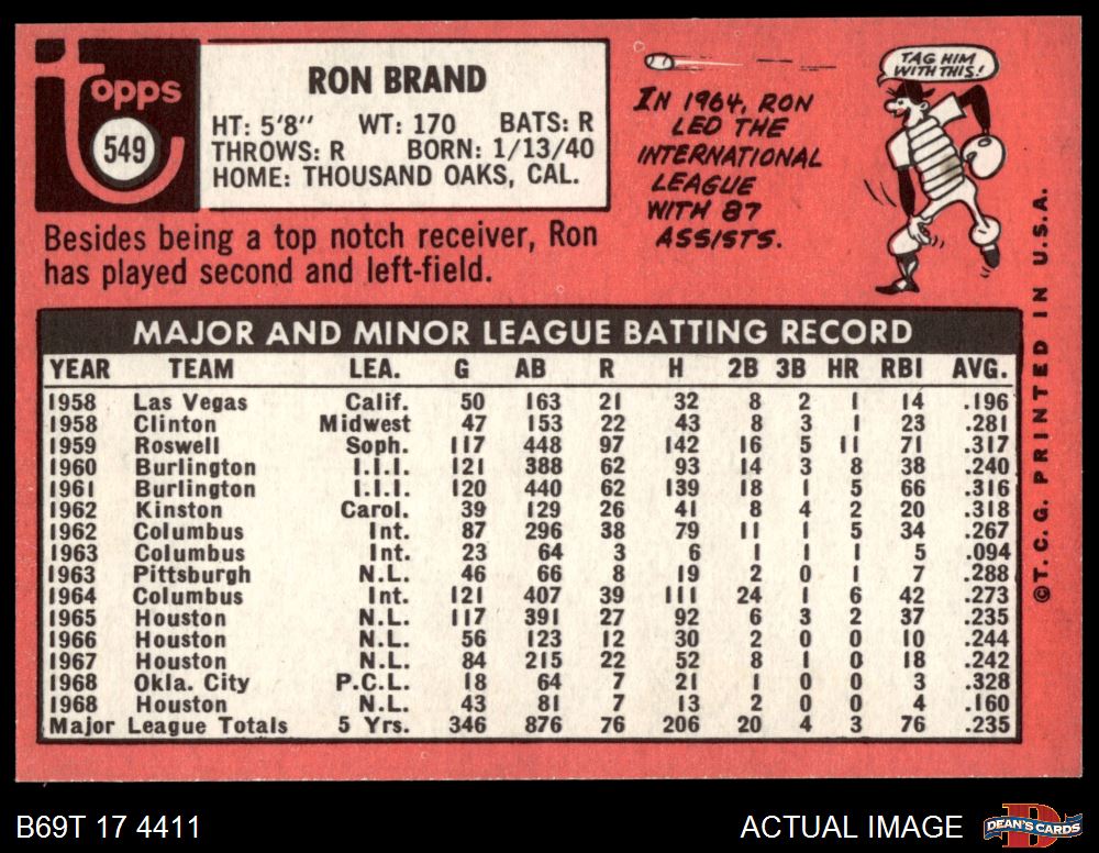 1969 Topps #549 Ron Brand 8 - NM/MT