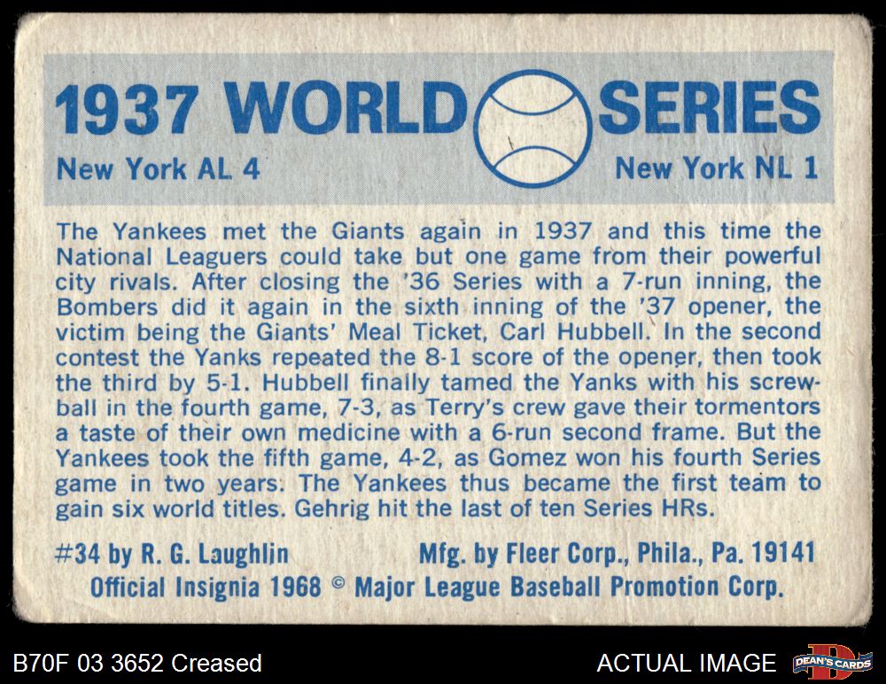 1970 Fleer World Series #34 - Carl Hubbell 1937 Yankees vs. Giants 2 - GOOD