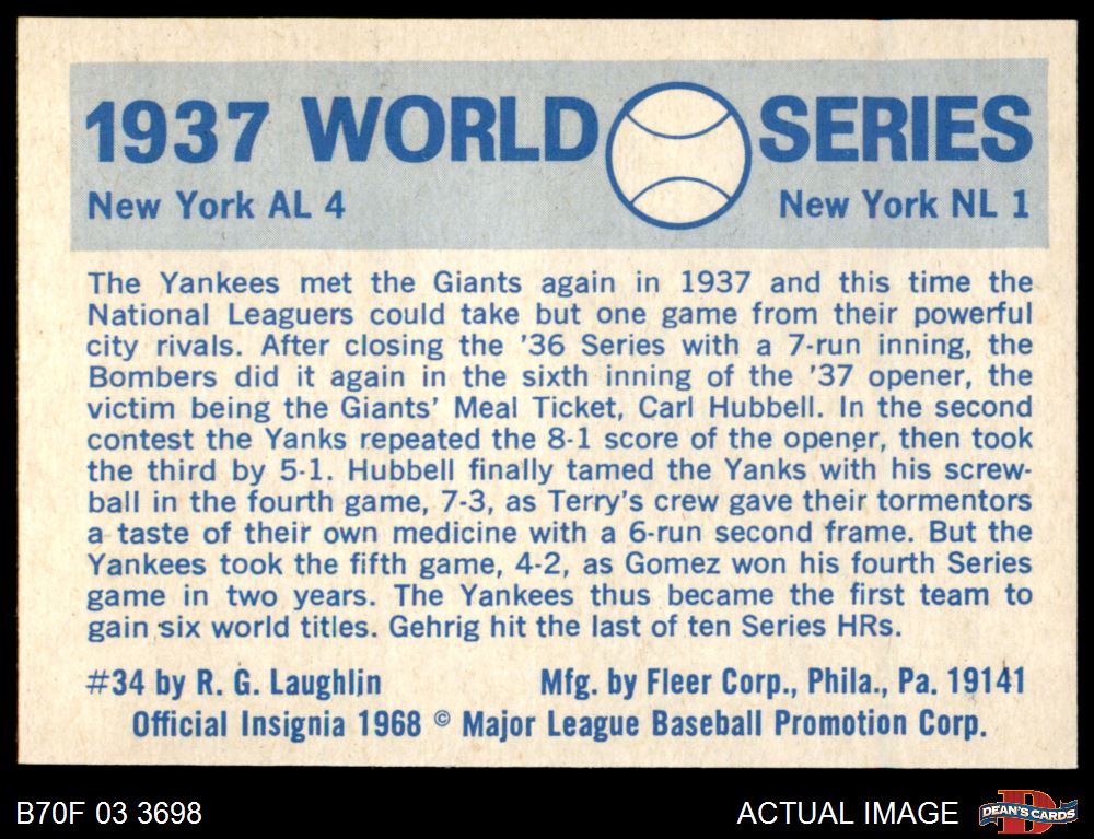 1970 Fleer World Series #34 - Carl Hubbell 1937 Yankees vs. Giants 6 - EX/MT