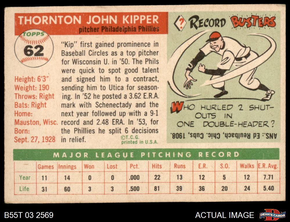 1955 Topps #62 Thornton Kipper 3.5 - VG+