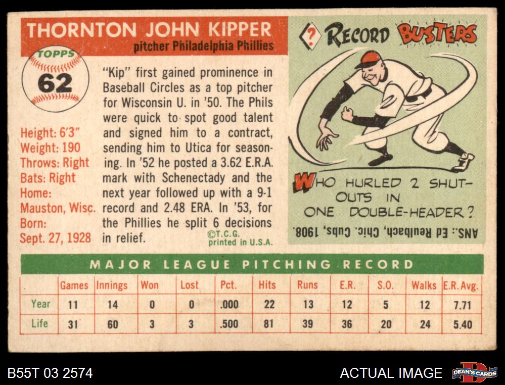 1955 Topps #62 Thornton Kipper 4 - VG/EX