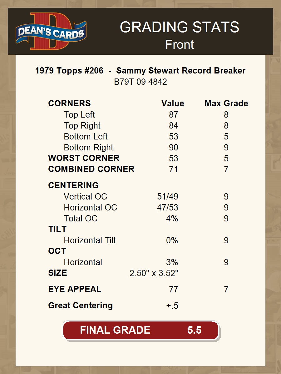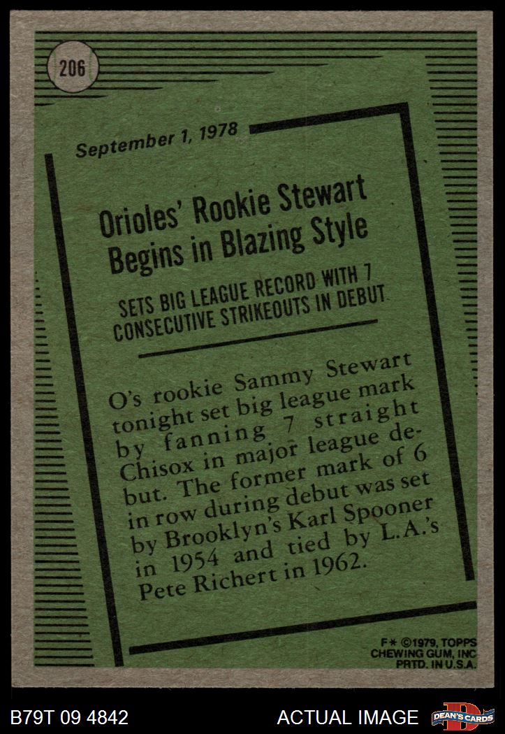 1979 Topps #206 - Sammy Stewart Record Breaker 5.5 - EX+
