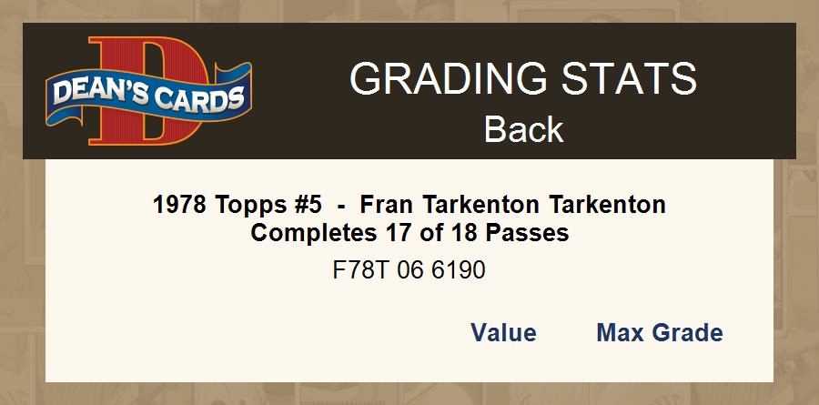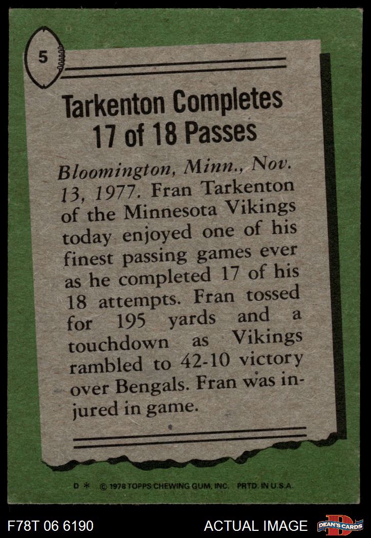 1978 Topps #5 - Fran Tarkenton Tarkenton Completes 17 of 18 Passes 5 - EX
