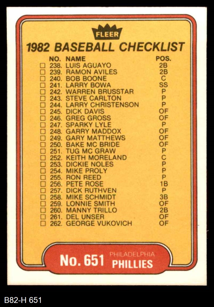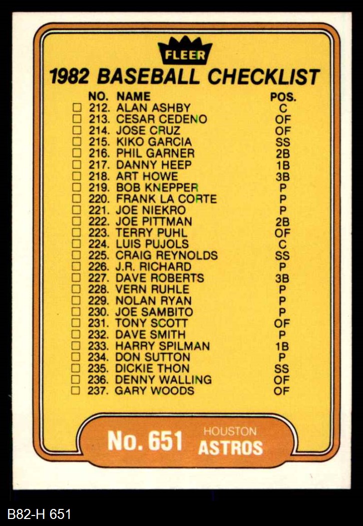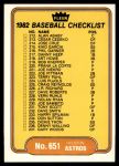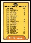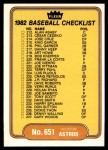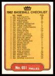 1982 Fleer #651 Astros / Phillies Checklist 8 - NM/MT