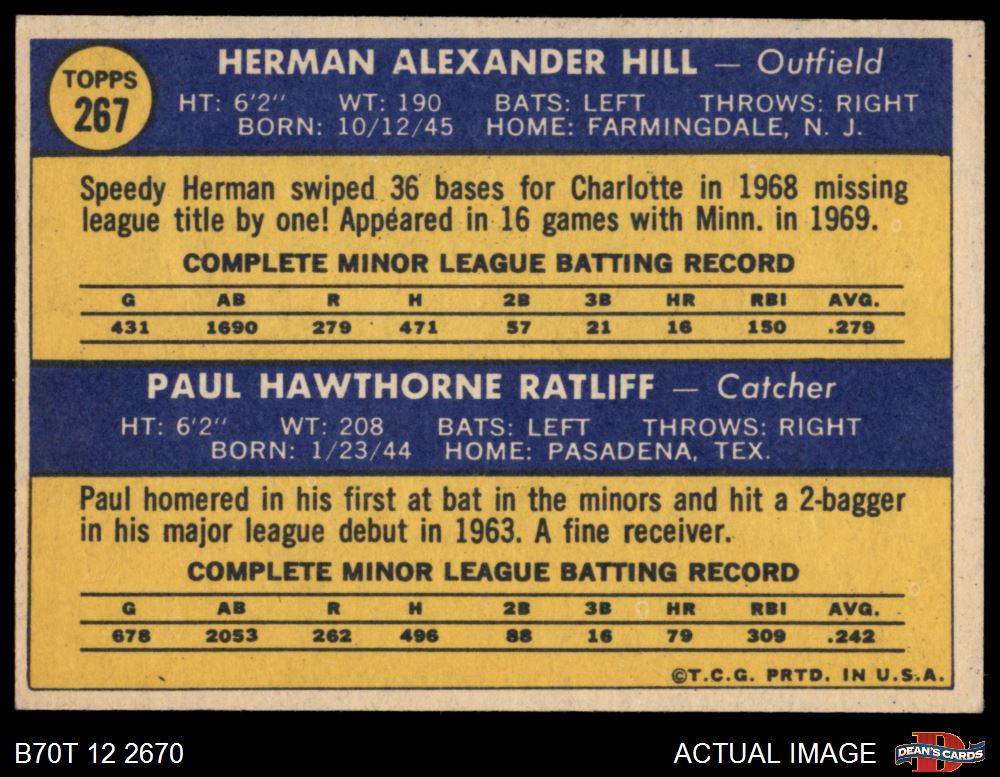 1970 Topps #267 - Herman Hill / Paul Ratliff Twins Rookies 7 - NM