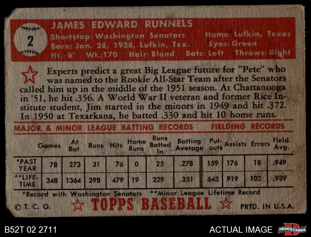 1952 Topps #2 Pete Runnels AUTHENTIC