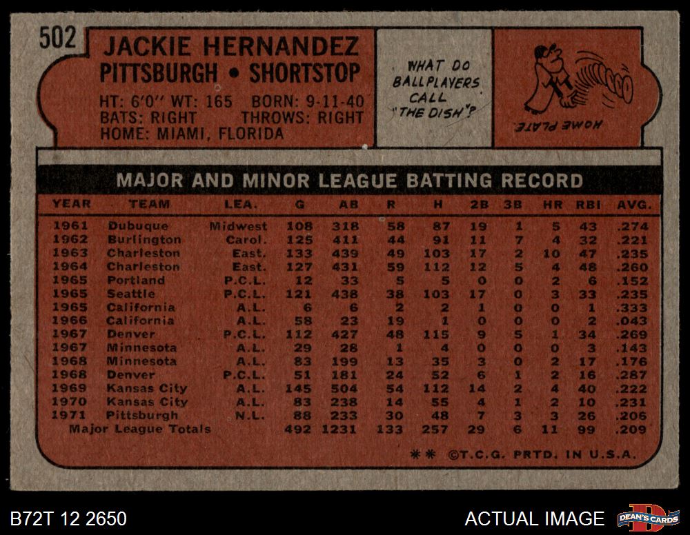 1972 Topps #502 Jackie Hernandez 3 - VG