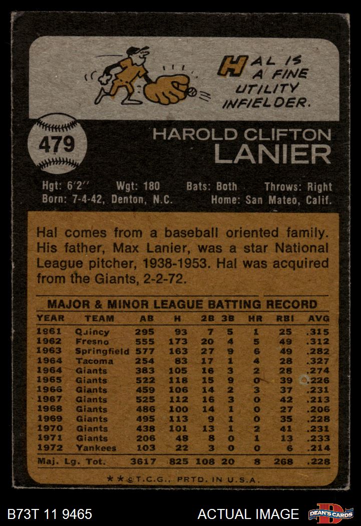 1973 Topps #479 Hal Lanier 2 - GOOD
