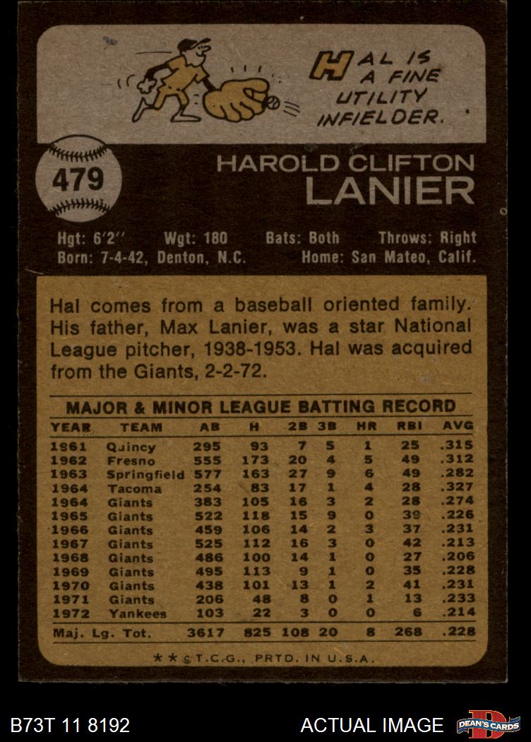 1973 Topps #479 Hal Lanier 6 - EX/MT