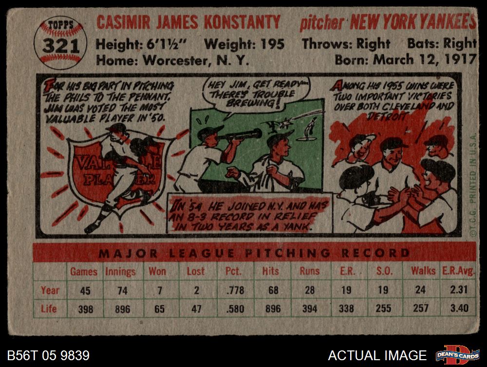 1956 Topps #321 Jim Konstanty 1 - POOR