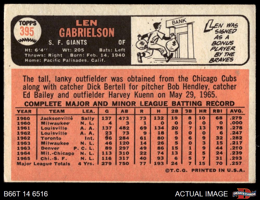 1966 Topps #395 Len Gabrielson 4 - VG/EX