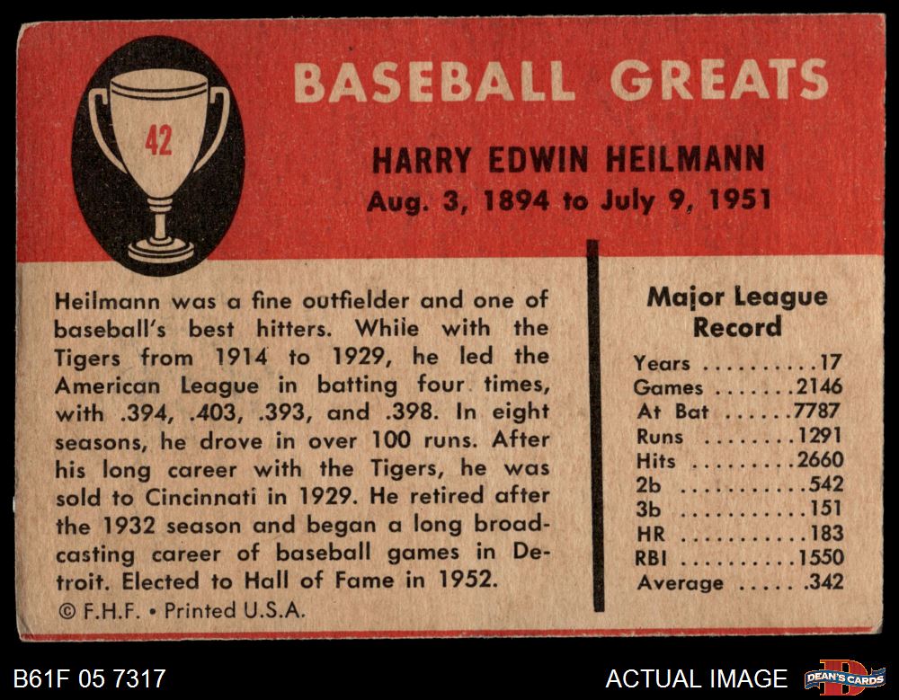 1961 Fleer #42 Harry Heilmann 3 - VG