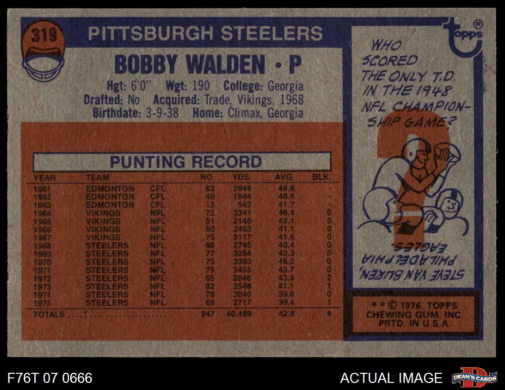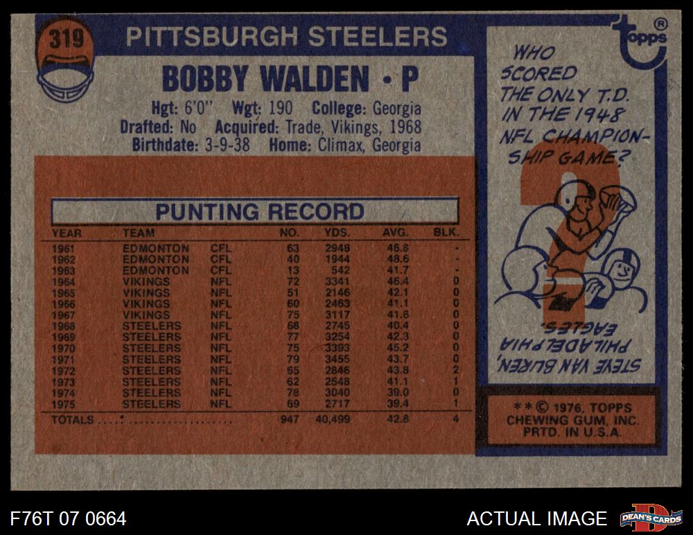 1976 Topps #319 Bobby Walden 5 - EX
