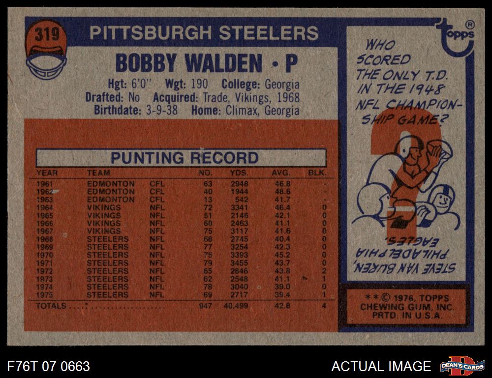 1976 Topps #319 Bobby Walden 7 - NM