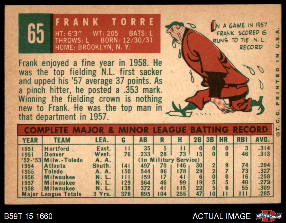 1959 Topps #65 Frank Torre
