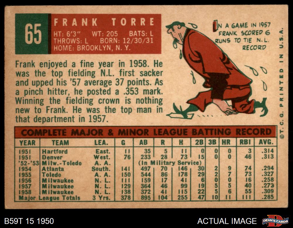 1959 Topps #65 Frank Torre 3 - VG