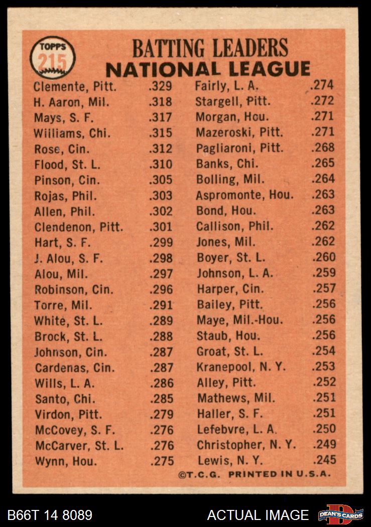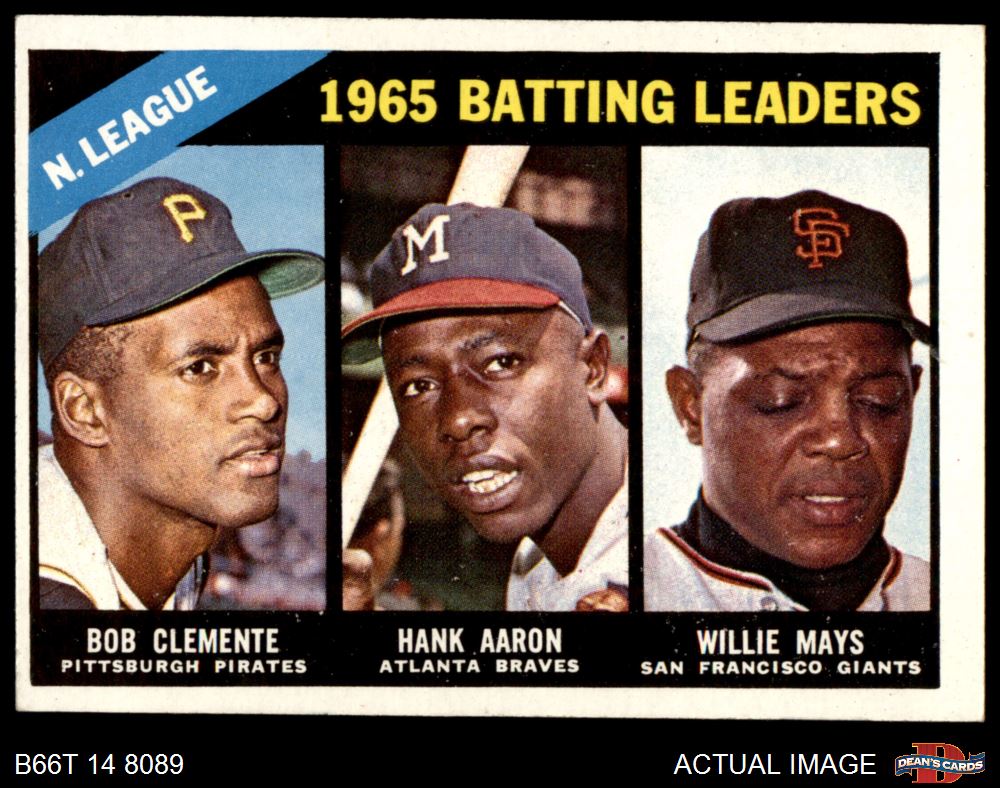 1966 Topps #215 - Roberto Clemente / Willie Mays / Hank Aaron NL Batting Leaders 5 - EX
