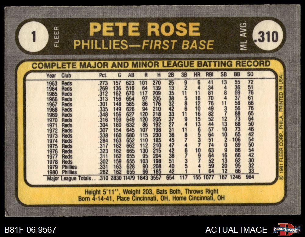 1981 Fleer #1 270 hits in 1963 should be 170 Pete Rose 6 - EX/MT