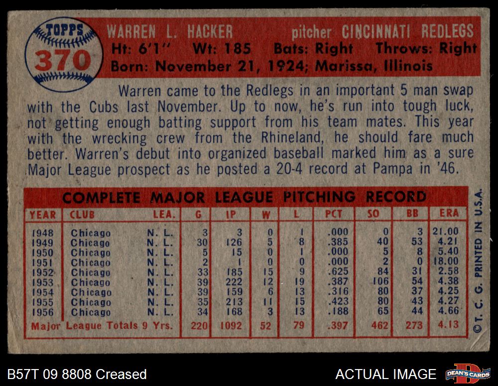 1957 Topps #370 Warren Hacker 2 - GOOD