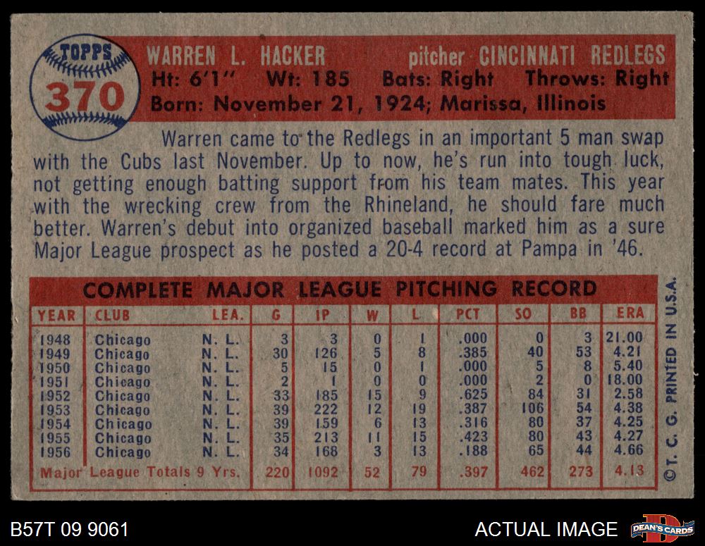 1957 Topps #370 Warren Hacker 4 - VG/EX