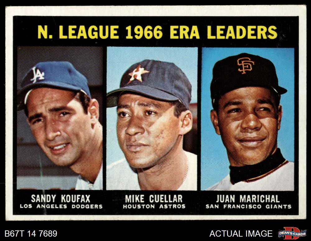 1967 Topps #234 - Sandy Koufax / Juan Marichal / Mike Cuellar NL ERA Leaders 5 - EX