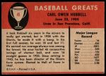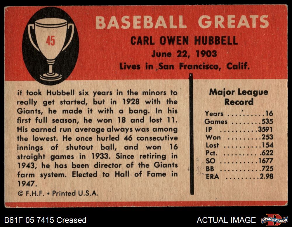 1961 Fleer #45 Carl Hubbell Front Thumbnail