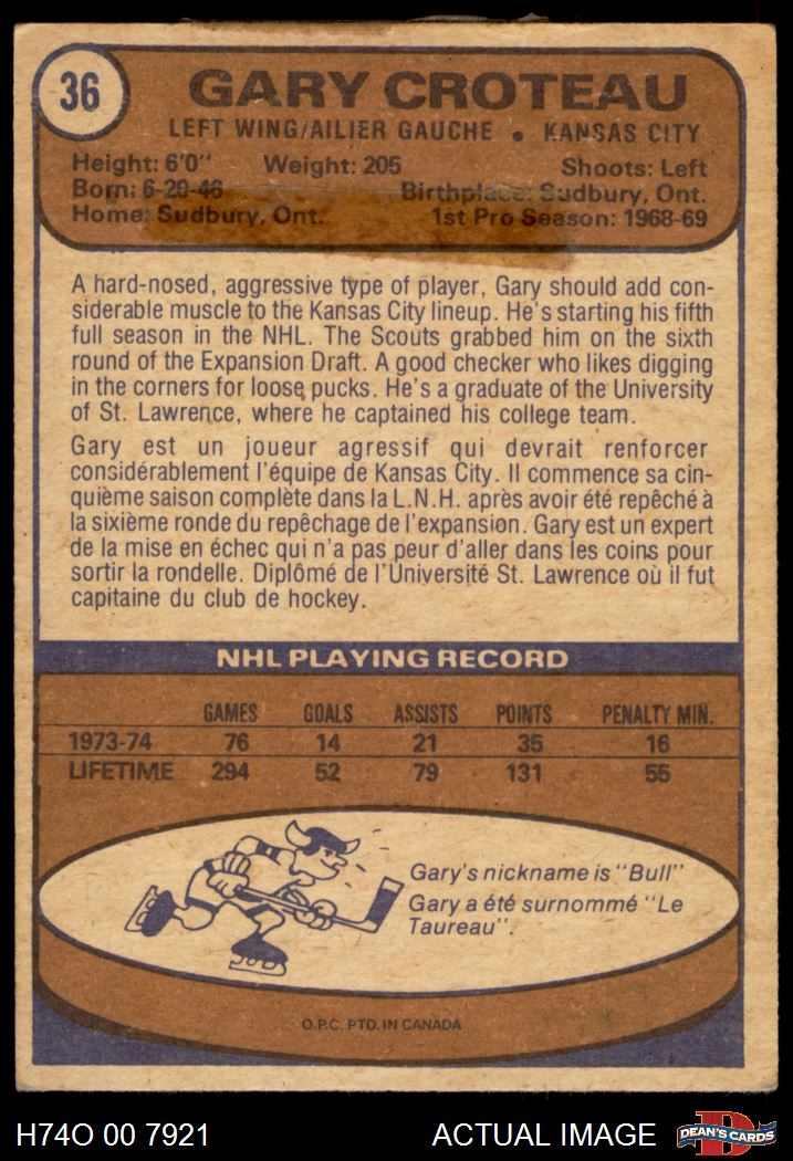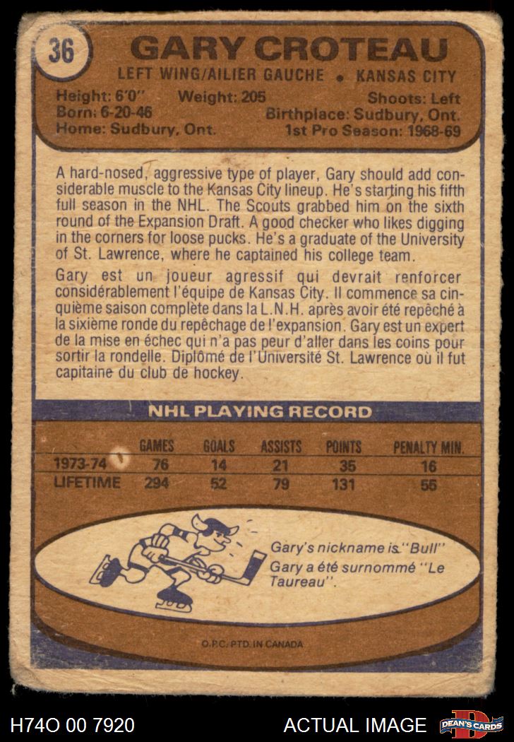 1974 O-Pee-Chee NHL #36 Gary Croteau