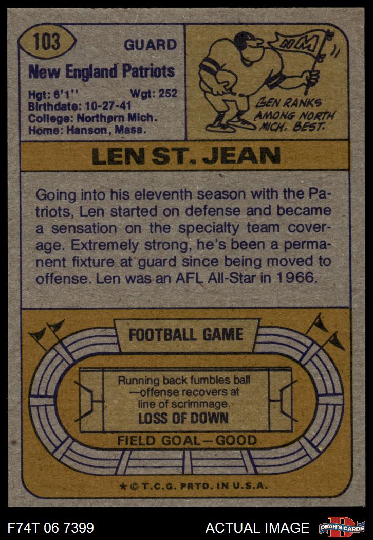 1974 Topps #103 ONE Len St. Jean 6 - EX/MT