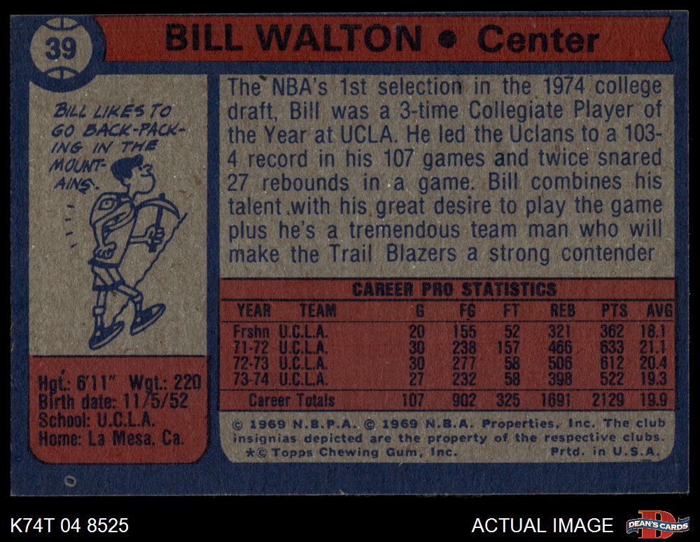 1974 Topps #39 Bill Walton