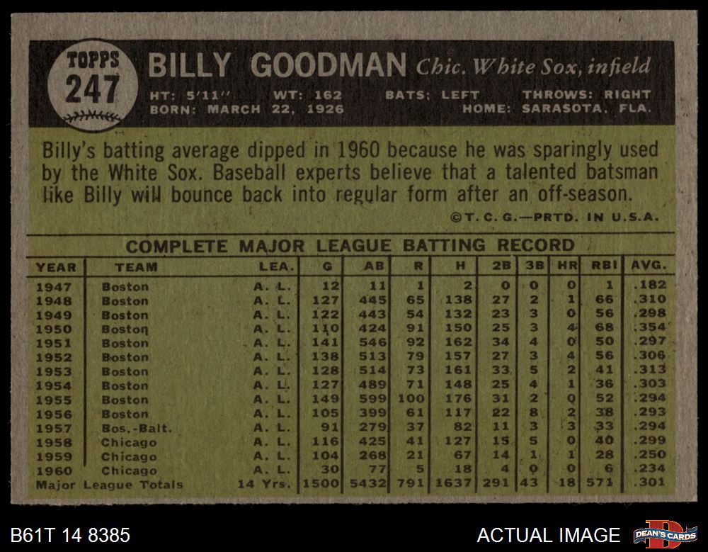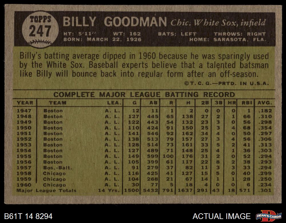 1961 Topps #247 Billy Goodman 4 - VG/EX