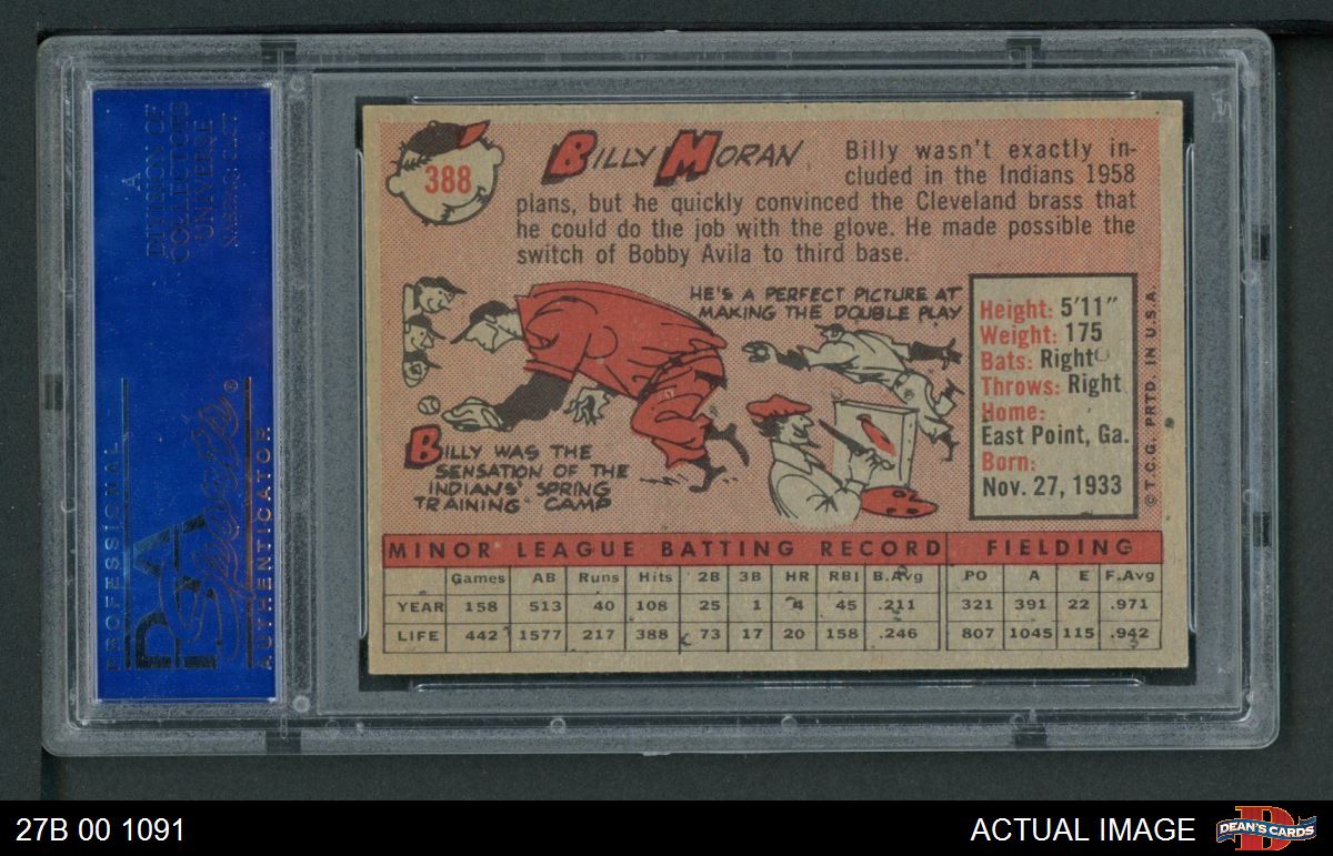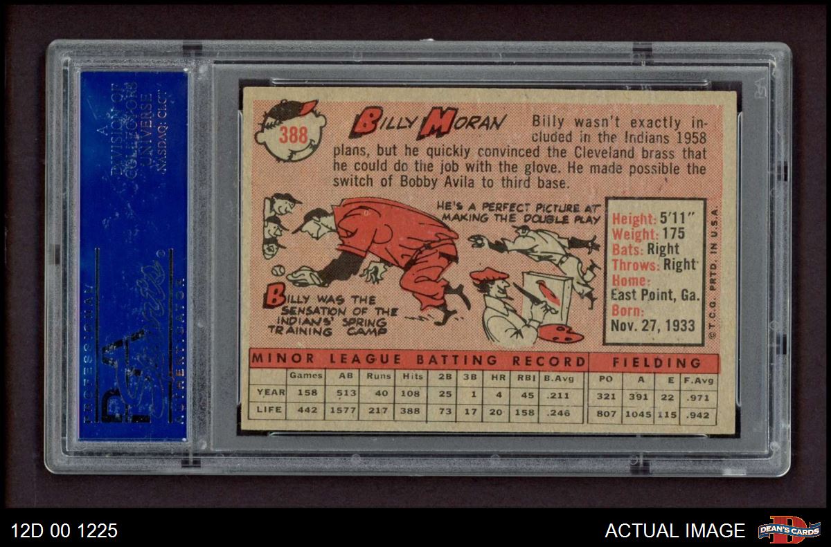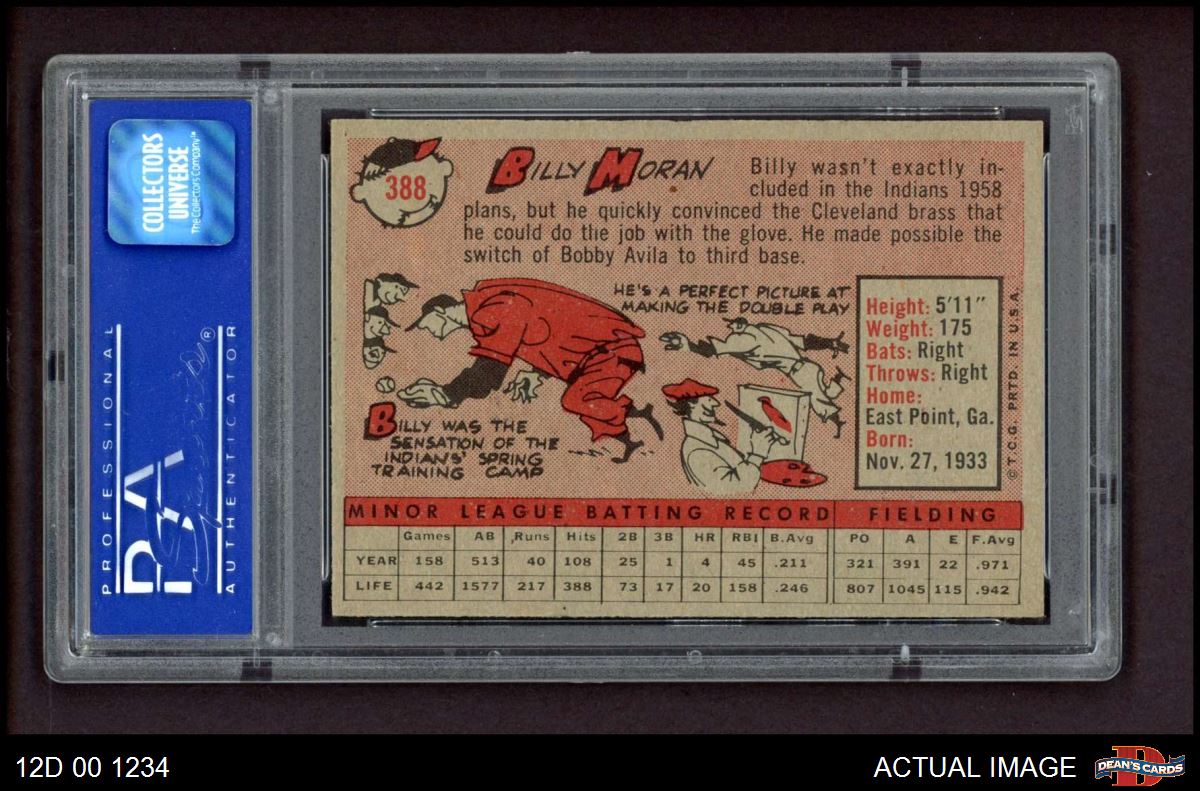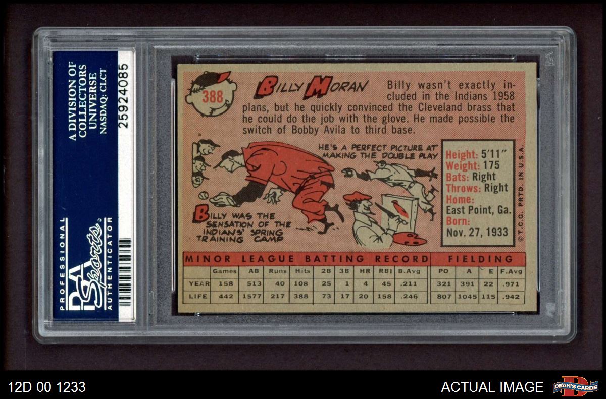 1958 Topps #388 Billy Moran PSA 8 - NM/MT