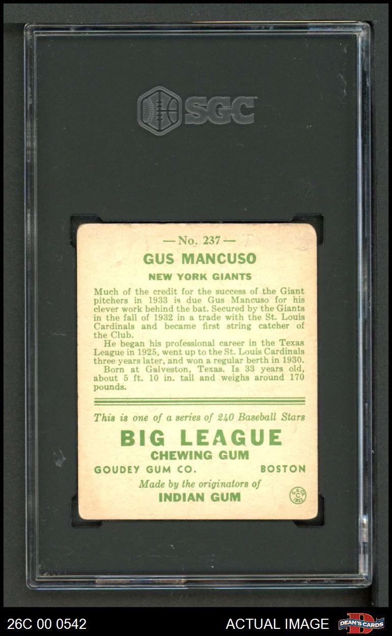 1933 Goudey #237 Gus Mancuso SGC 2.5 - GD+