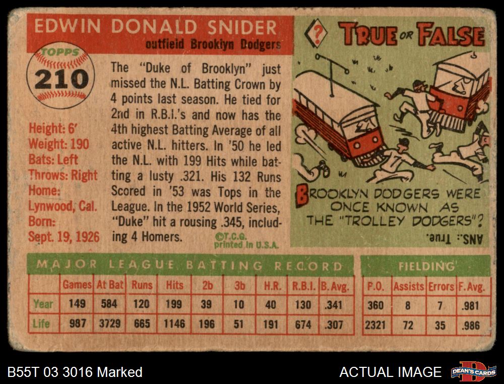 1955 Topps #210 Duke Snider 1 - POOR