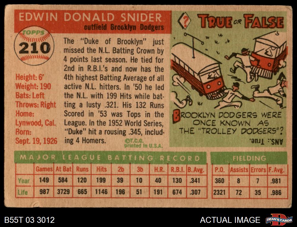 1955 Topps #210 Duke Snider 1.5 - FAIR