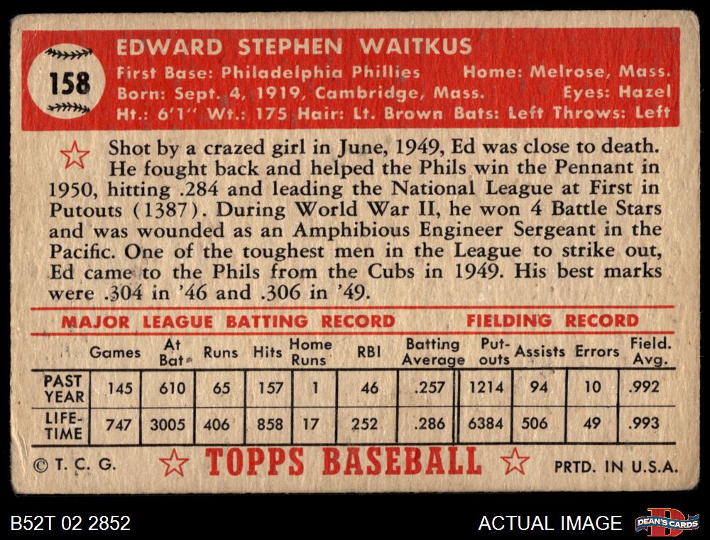 1952 Topps #158 CRM Eddie Waitkus