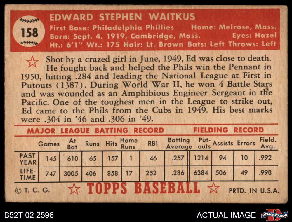 1952 Topps #158 CRM Eddie Waitkus 3 - VG