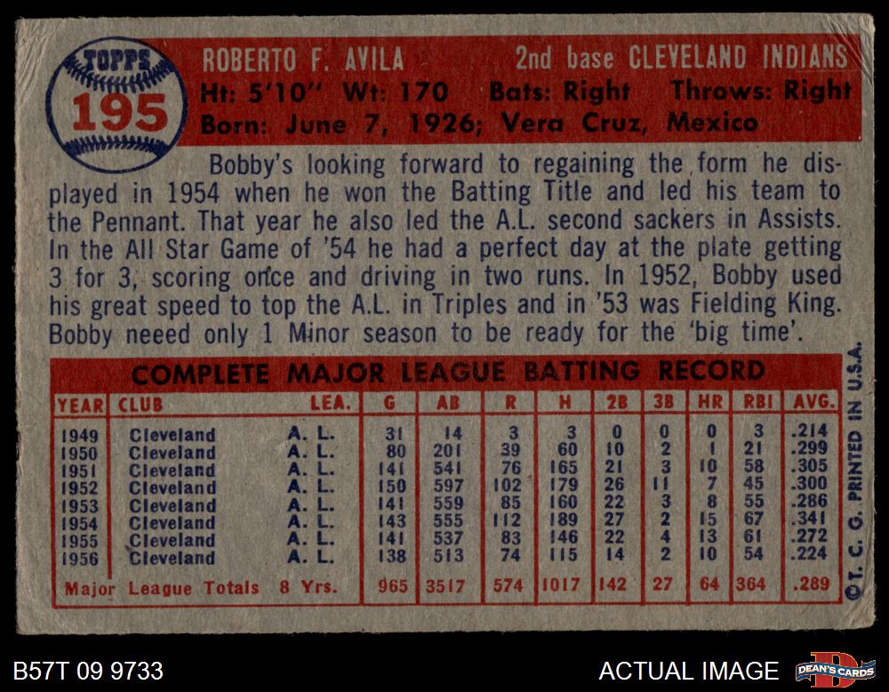 1957 Topps #195 Bobby Avila 2 - GOOD
