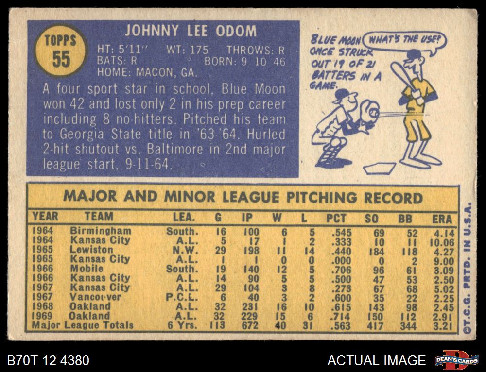1970 Topps #55 Blue Moon Odom 4 - VG/EX