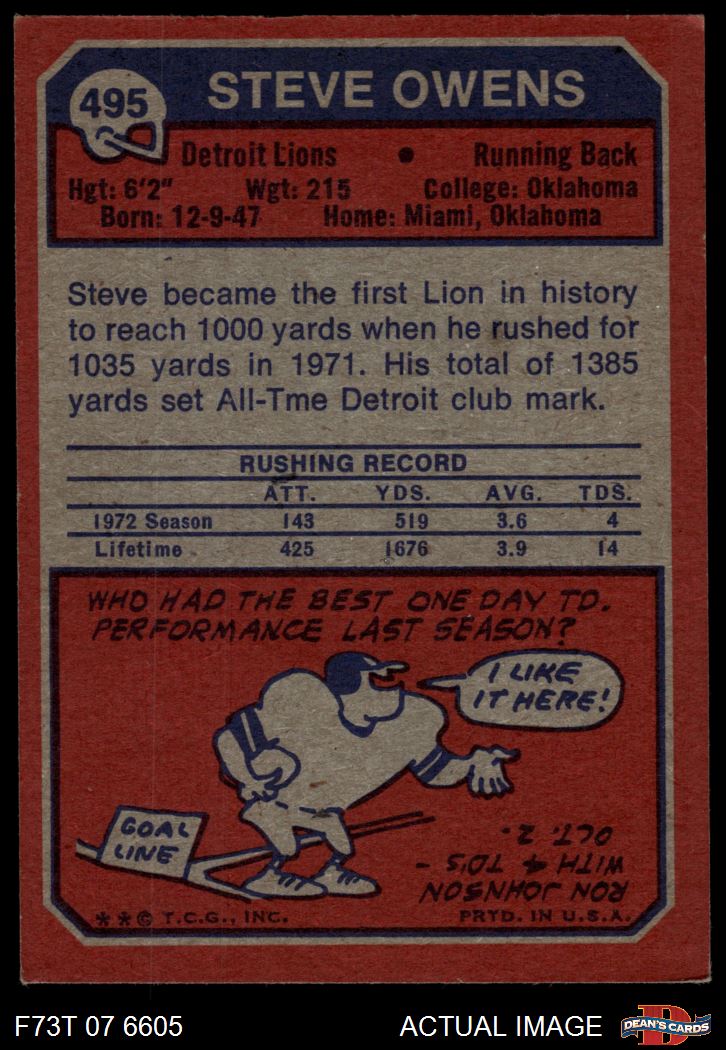 1973 Topps #495 Steve Owens 6 - EX/MT