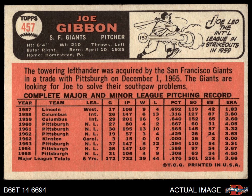1966 Topps #457 Joe Gibbon 4 - VG/EX