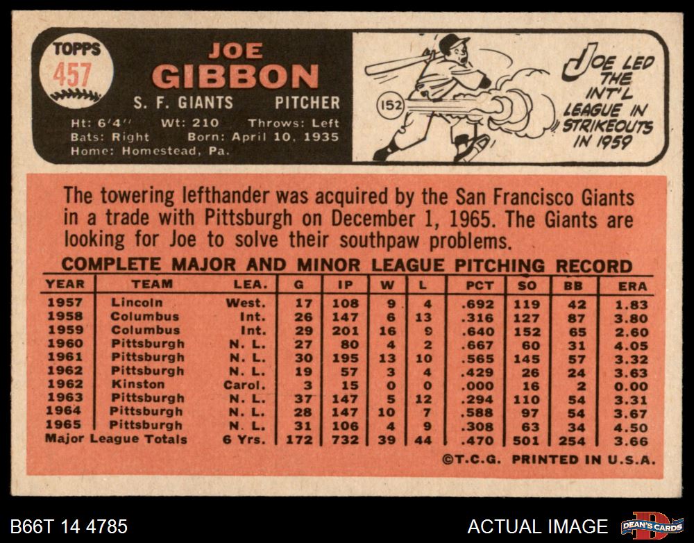 1966 Topps #457 Joe Gibbon 4.5 - VG/EX+
