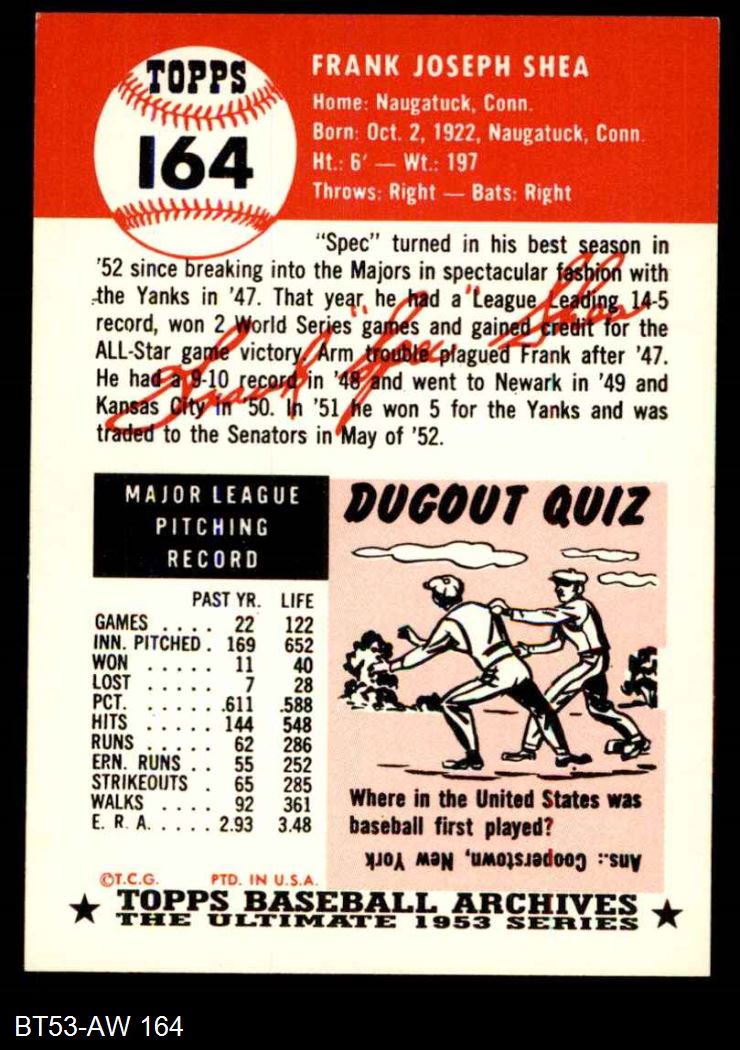 1953 Topps Archives #164 Frank Shea