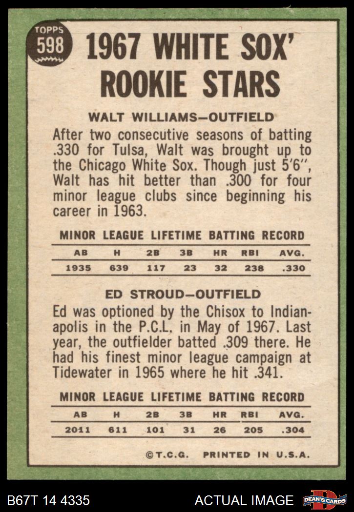1967 Topps #598 - Walt Williams / Ed Stroud White Sox Rookies 8 - NM/MT