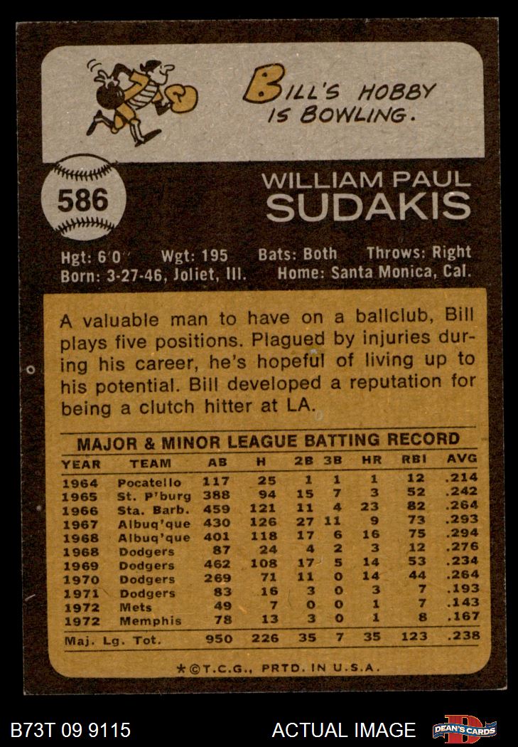 1973 Topps #586 Bill Sudakis 6 - EX/MT