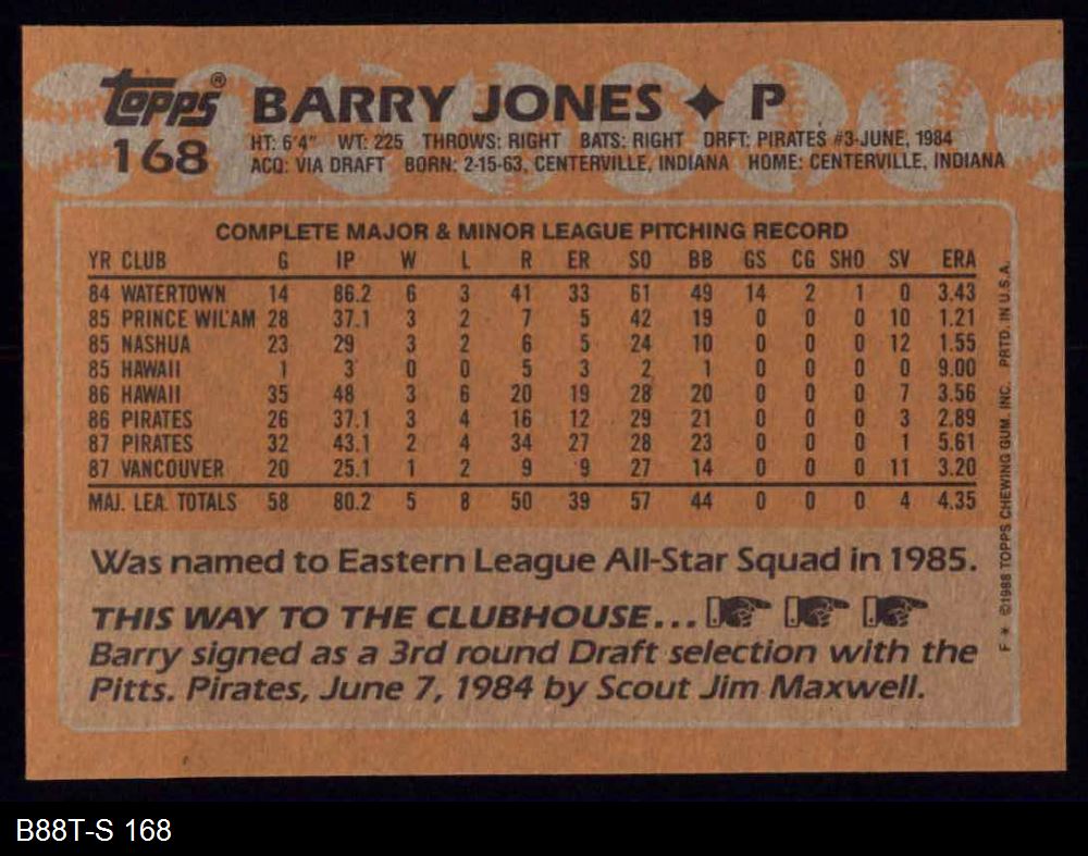 1988 Topps #168 Barry Jones