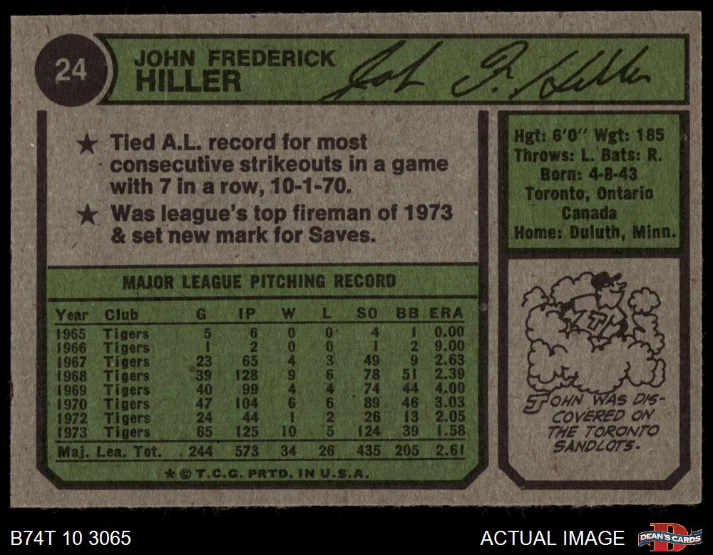 1974 Topps #24 John Hiller 4 - VG/EX