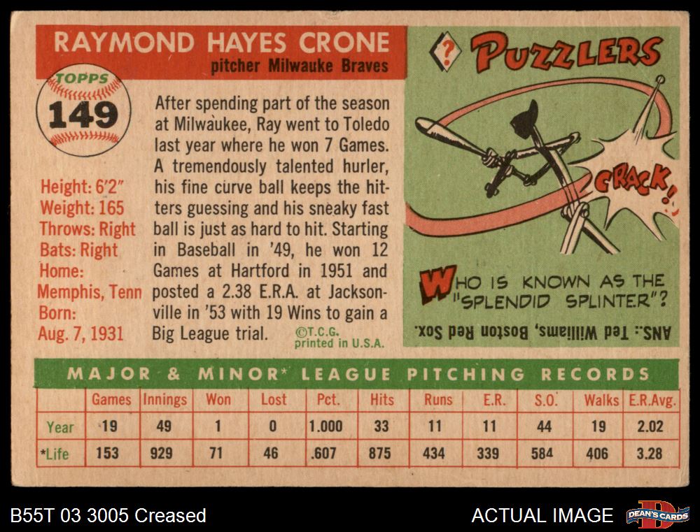 1955 Topps #149 Ray Crone 2 - GOOD