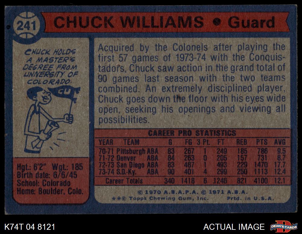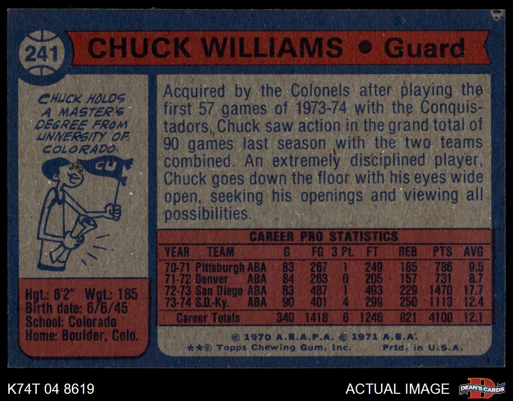 1974 Topps #241 Chuck Williams 4 - VG/EX