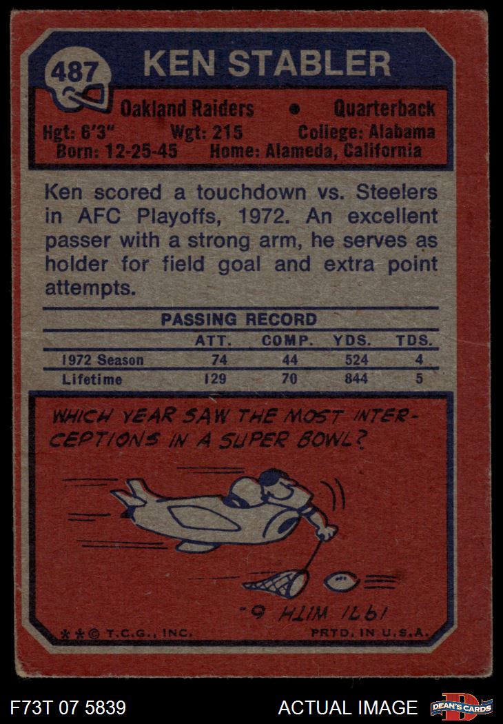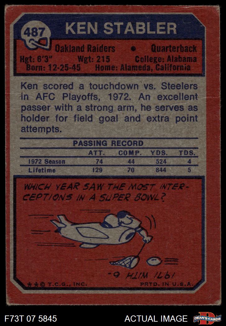 1973 Topps #487 Ken Stabler 1.5 - FAIR